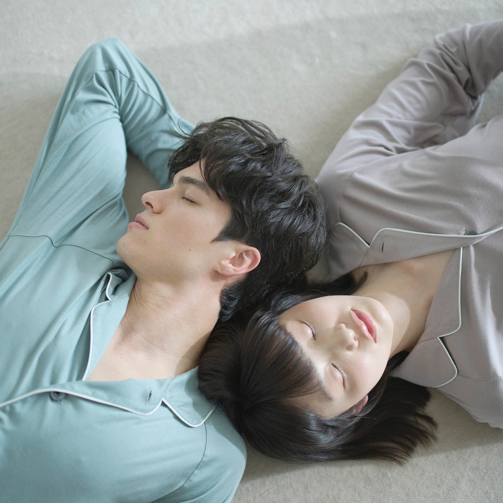 主素材には、持続可能なユーカリを閉鎖循環式で製造した⽣地を使⽤しています。低刺激で通気性が⾼く、コットンよりも⾼い吸湿性を誇り、⼀晩中快適な着⼼地を保