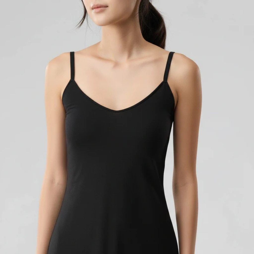 ※胸元は2層の生地、取り外し可能なブラパッド。
