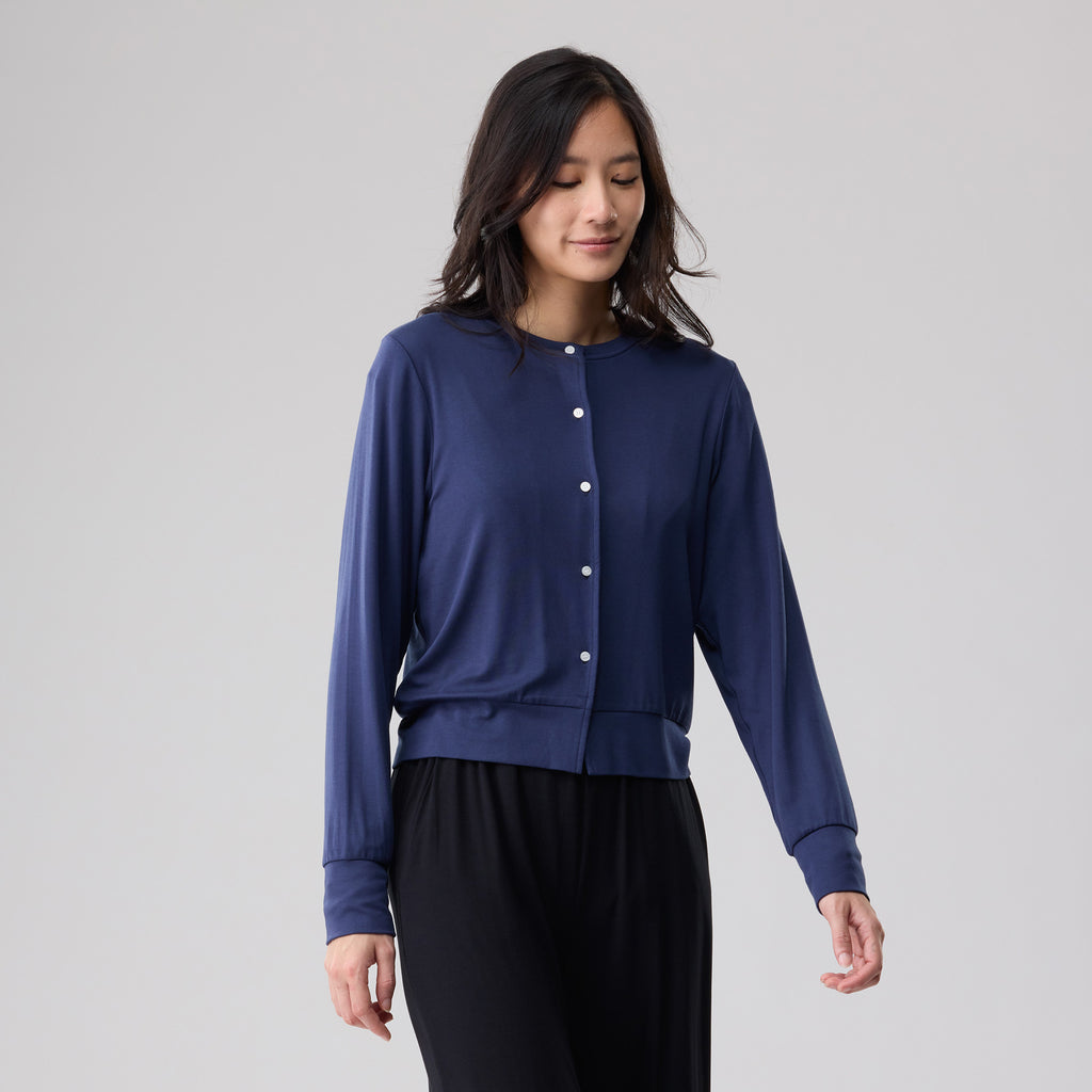 2本のシルクタッチ糸を撚り合わせ、シルクタッチの滑らかな肌触りはそのままに保温性を高めました。オーストリアのブナの木から生成された天然素材。冬の部屋着にも、外出時の重ね着にも最適。