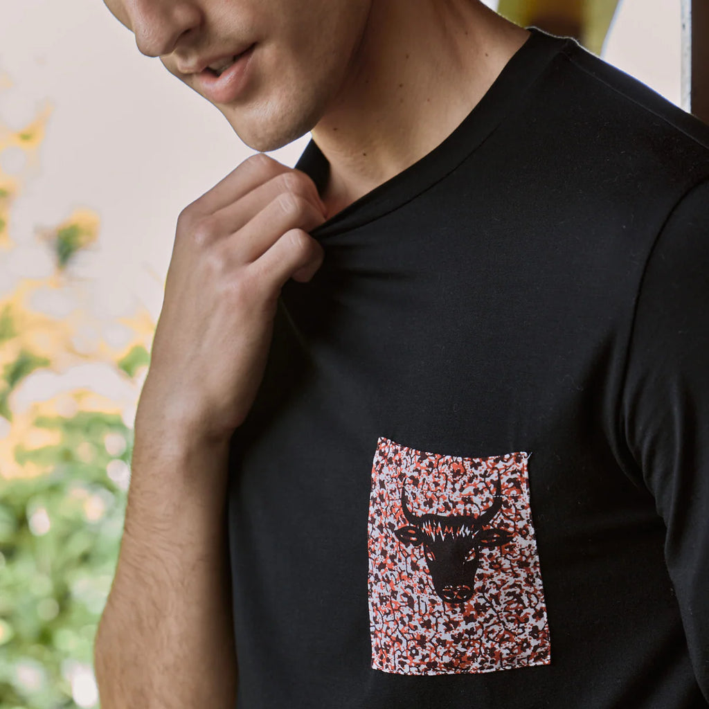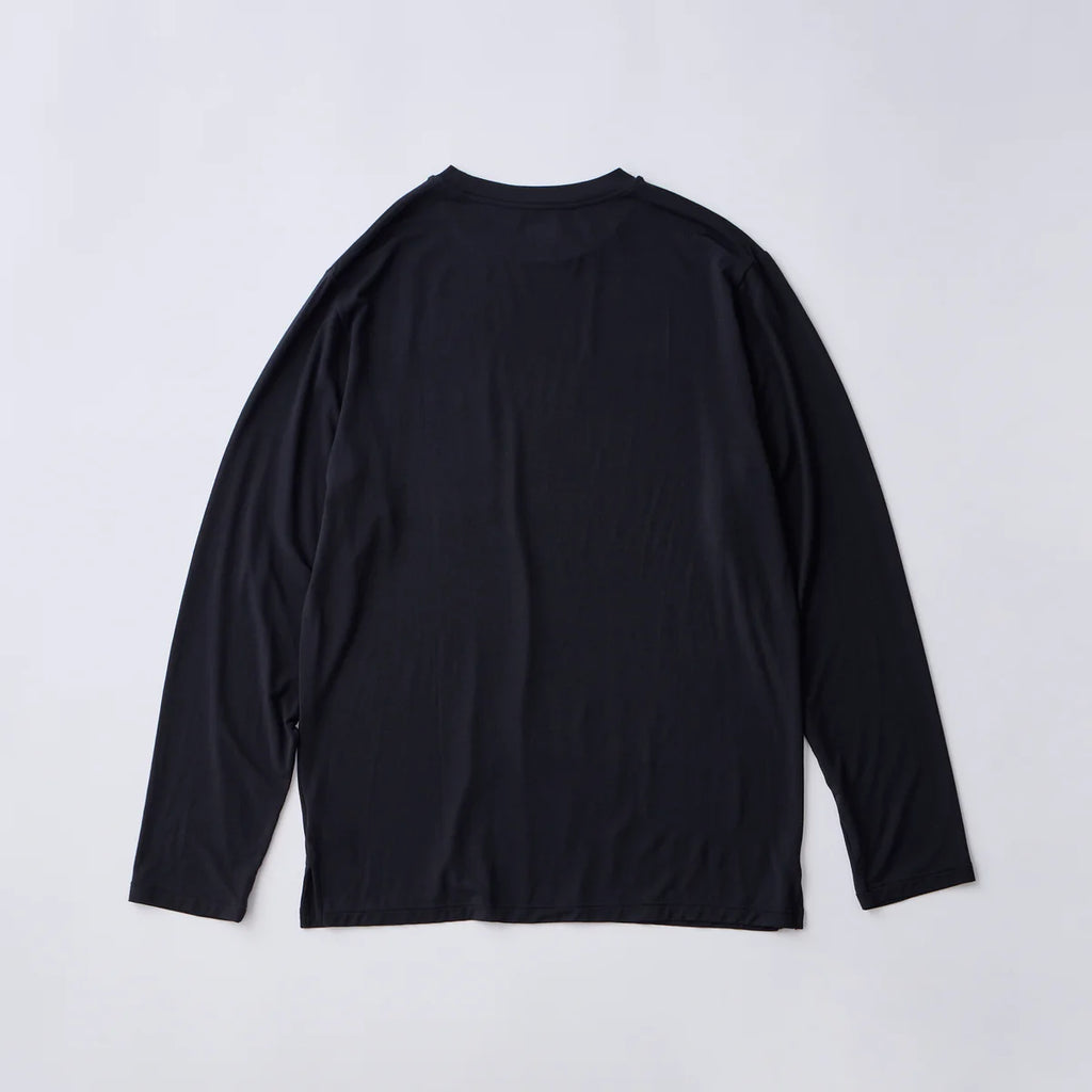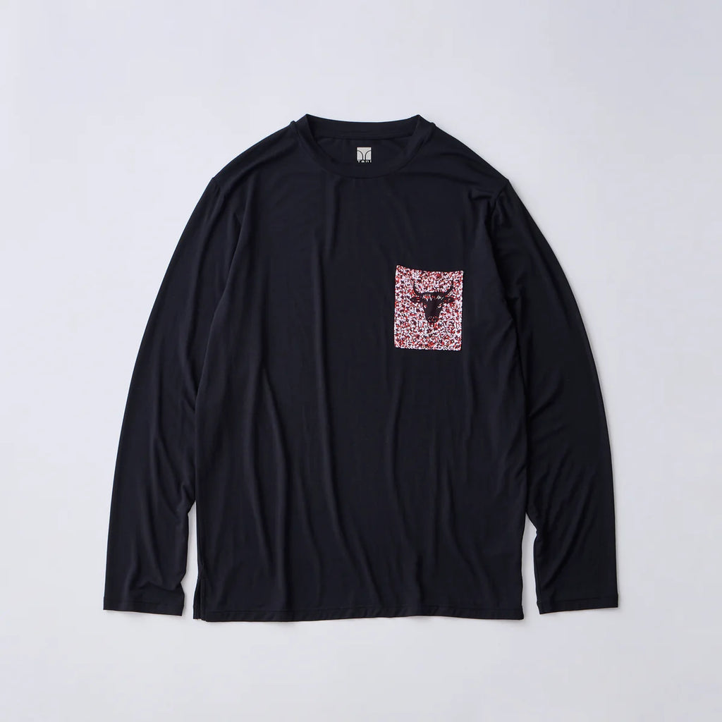 ラウンドネックのボックス型のロングスリーブTシャツは、ややゆとりのあるシルエットでリラックス感を持たせたスタンダードかつシンプルなベースレイヤー。ラフに着られるアイテムながら、ブナの木を素材とした天然素材シルクタッチが独特のドレープを生み出し、動きに品をプラス。ポケット部分をソレイアードの「ラモヌール」柄と「 ジャハーンギール」柄に切り替えることでワンポイント。スタイルにアクセントと遊び心が生まれ、幅広いシーンで着用できます。