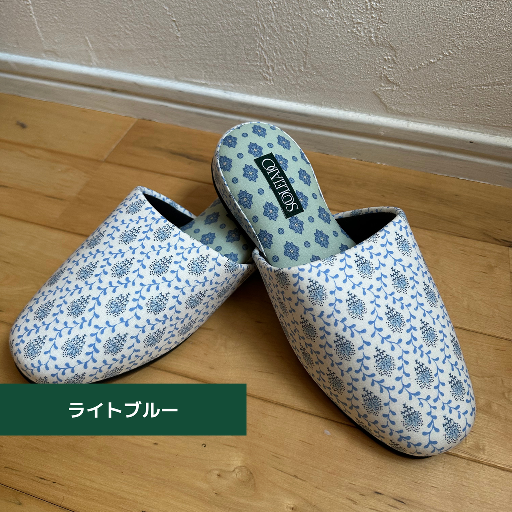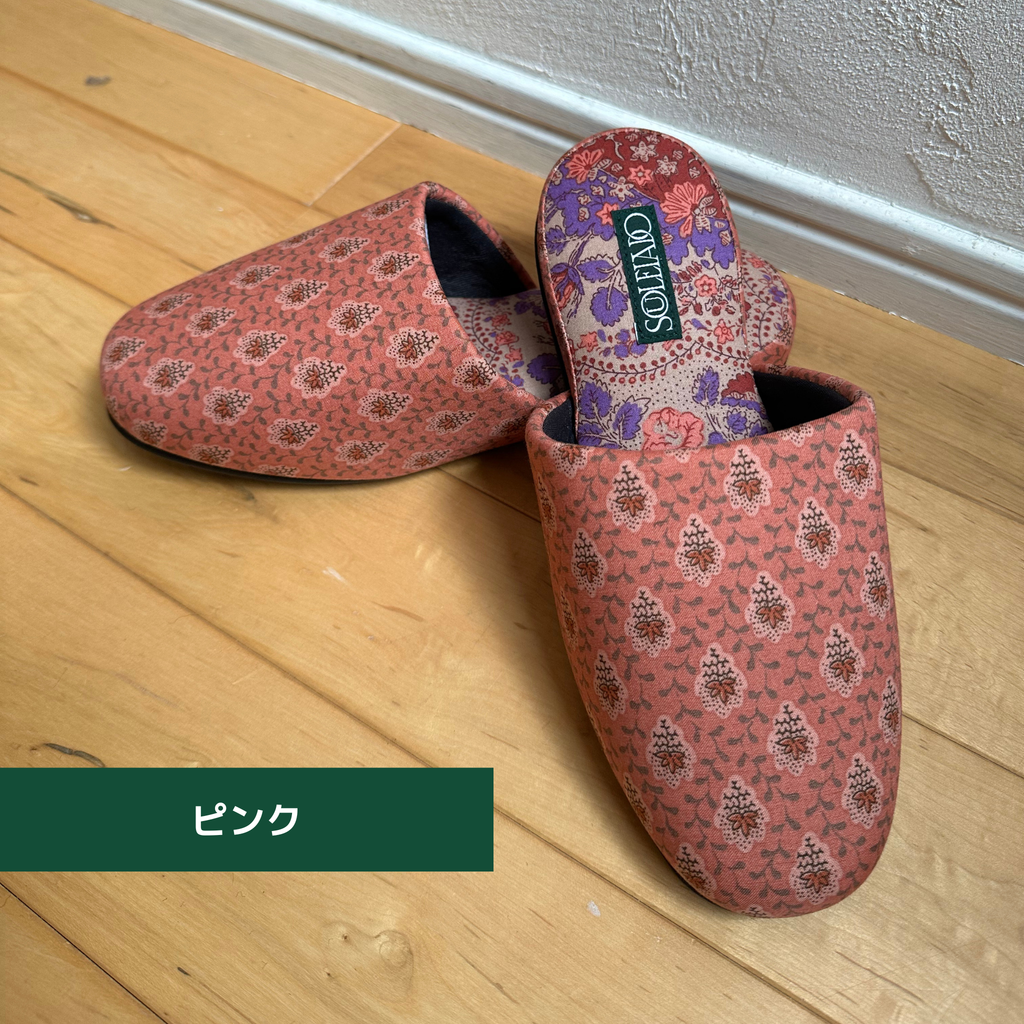 埼玉県·南河原の伝統工芸「南河原スリッパ」に、ソレイアードの美しいプリントを施しました 。ウェアにはTaniのシグネチャーであるSilktouch(シルクタッチ)素材を使用し、三重県の縫製工場で丁寧に仕立てています 。足元まで統一された美しさと、至福の肌触りをお届けします。